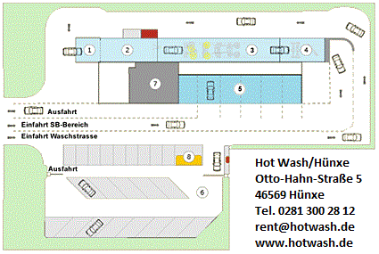 SB-Waschboxen 5m Breite, 7m Länge und 3,1m Höhe – hier passt (fast) alles rein! Textilwaschstraße 2,10m Höhe und 2,00m Breite. Außerdem inkl. Hand-Vorwäsche bei allen Programmen! Fahrzeugpflege Aufbereitung, Politur, Reinigung. Neu Wohnmobilvermietung